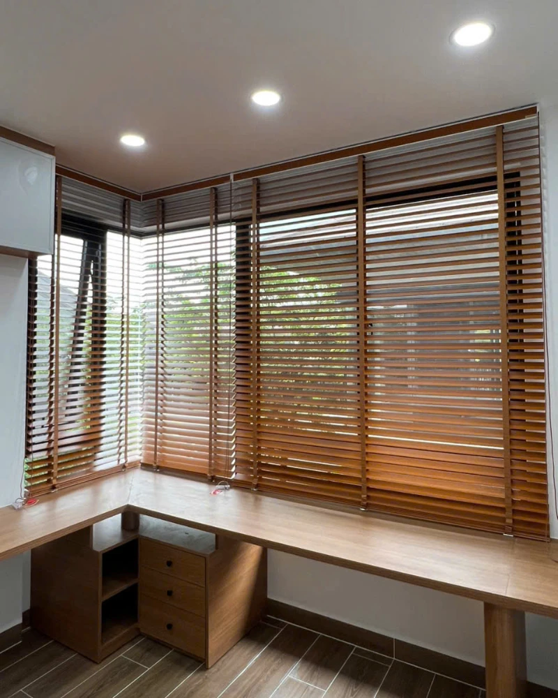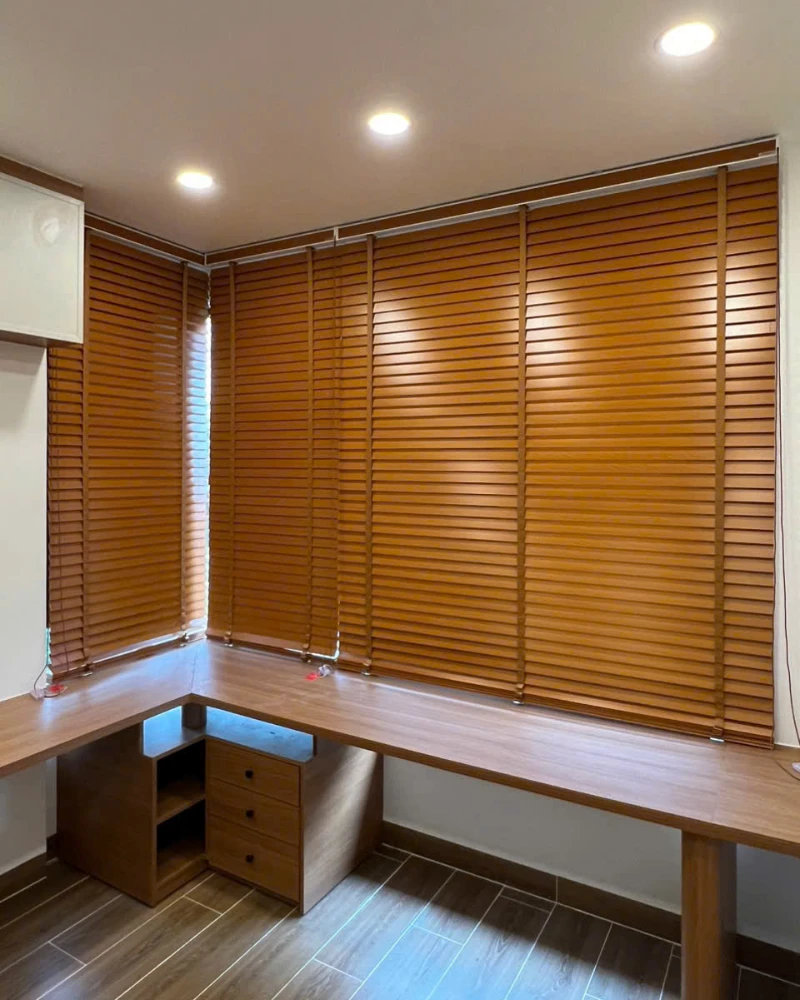 Nhờ lớp sơn phủ PU hoặc UV cao cấp, rèm có khả năng chống ẩm, chống cong vênh và giữ màu bền đẹp theo thời gian, phù hợp cho cả không gian nhà ở lẫn văn phòng làm việc.